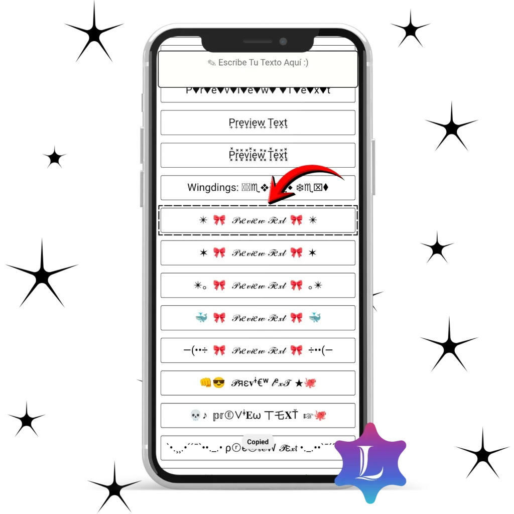 Accede a símbolos aesthetic y caracteres especiales Unicode que transforman cualquier texto común en algo creativo y visualmente impactante. Incluye burbujas, círculos, flechas, estrellas y combinaciones únicas listas para copiar y pegar.